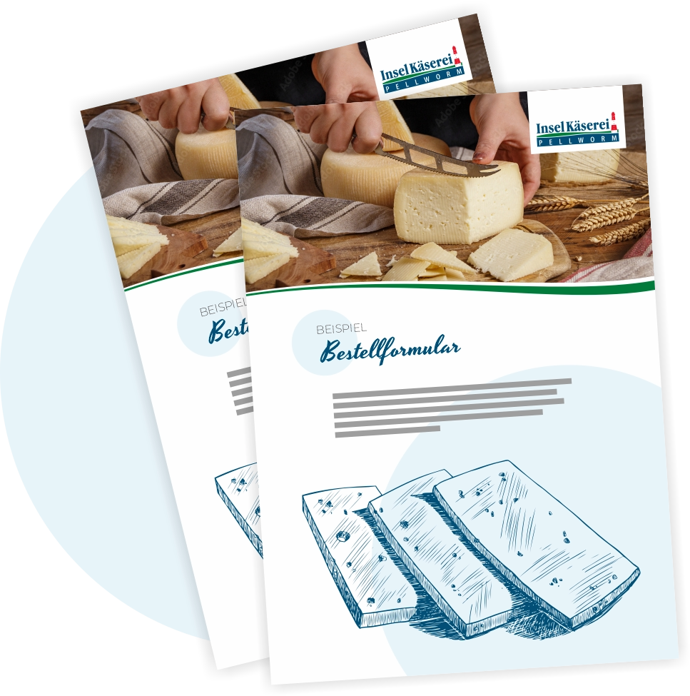 Bestellformular ausfüllen (Mindestmenge je Käse 0,5 kg), ausdrucken und unterschreiben.